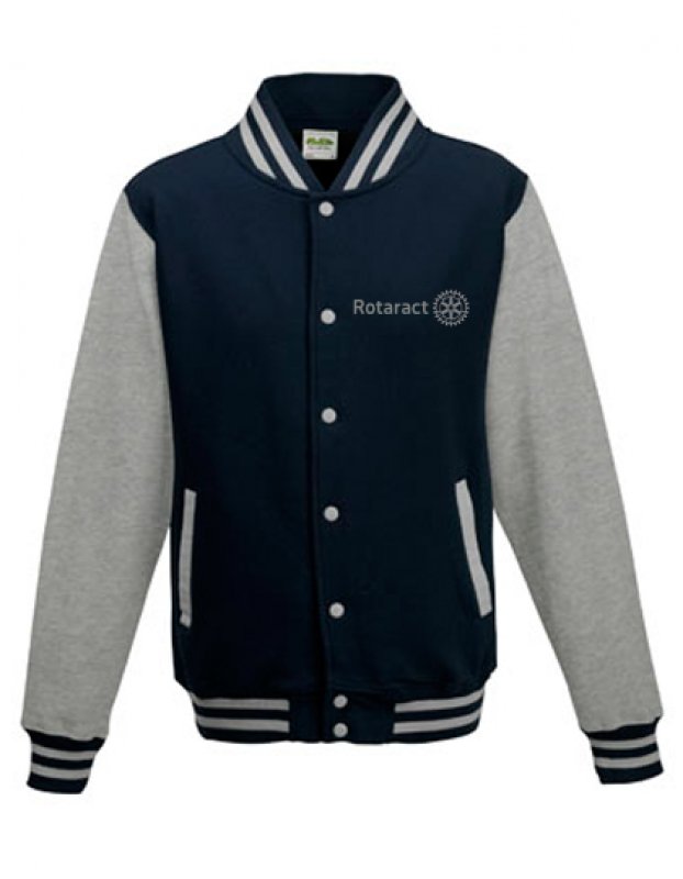 Trendige Rotaract College Jacke für Veranstaltungen oder den Alltag. Die Jacke ist immer zweifarbig. Die Ärmel haben eine andere Farbe als der Körper. Das Rotaract Logo wird in weiß auf die Brust gestickt.