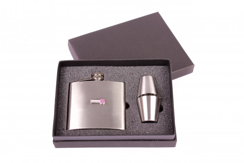 Dieser handliche und robuste Flachmann aus rostfreiem, gebürsteten Stahl ist sowohl bei Rotaract Events, als auch in gemütlicher Runde ein treuer Begleiter. Zusammen mit einem Einfüllstutzen und zwei Schnapspinnchen kann diese Flasche nur einem Zweck dienen...die Freundschaft zu vertiefen.