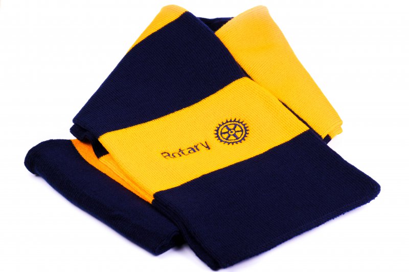 Warmer Winterschal in Rotary Farben mit eingesticktem Rotary Logo.