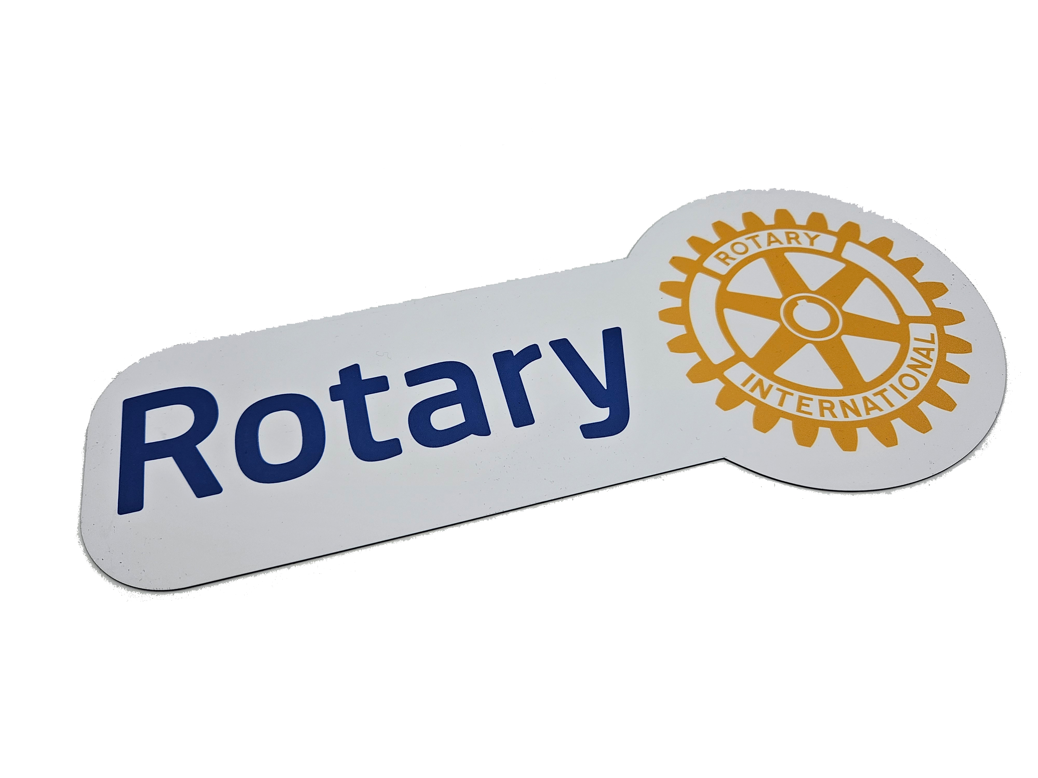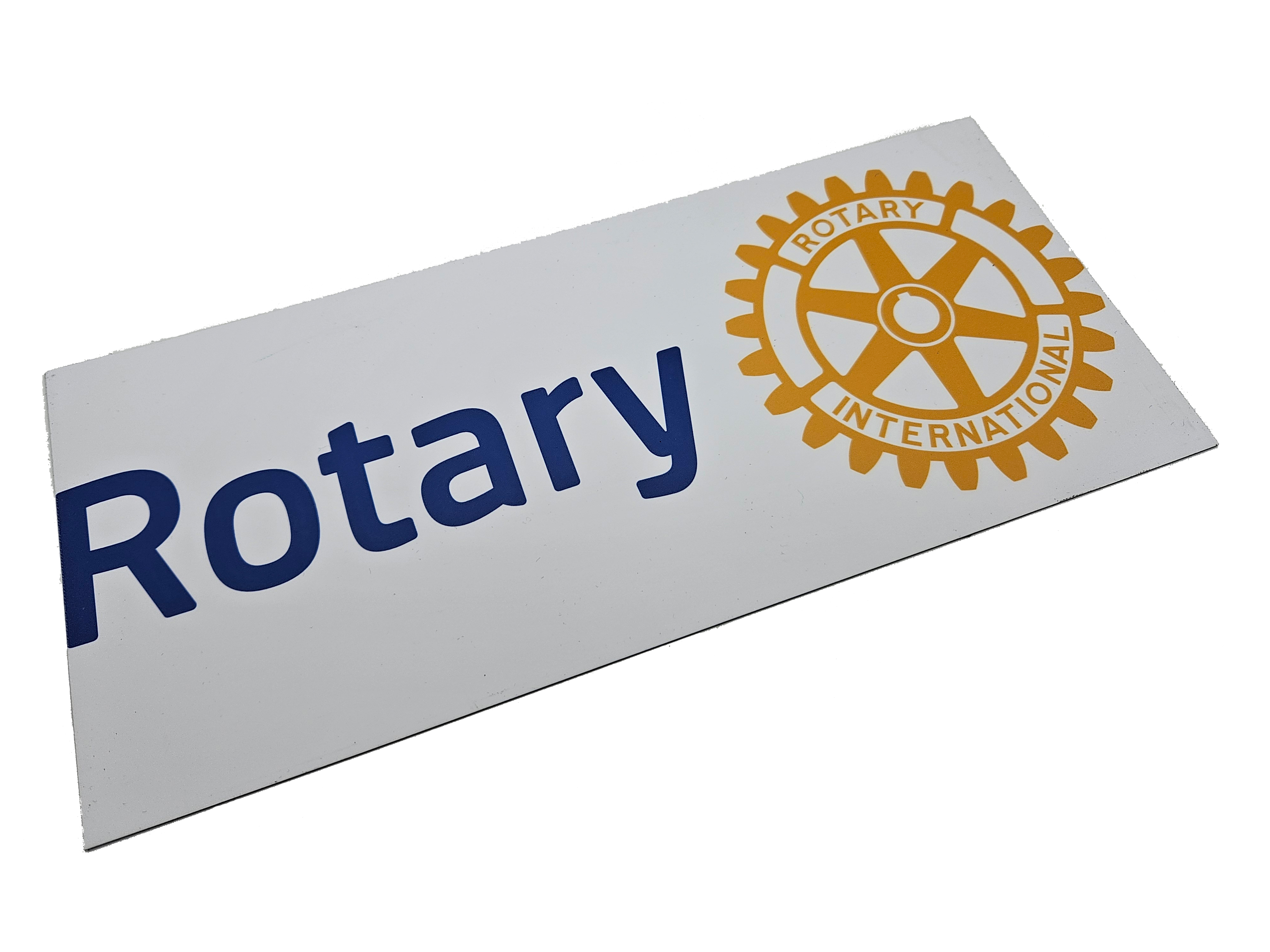 Hochwertiges Magnetschild mit Rotary Masterbrand in verschiedenen Größen. Perfekt für die Anwendung bei Veranstaltungen um Wege zu beschildern oder zur Dekoration eines Autos (Oldtimer Rally, Ehrengäste, Shuttel-Services, Bustransfer)