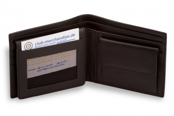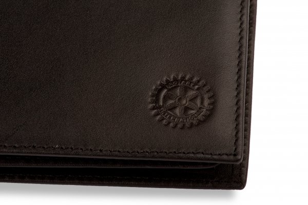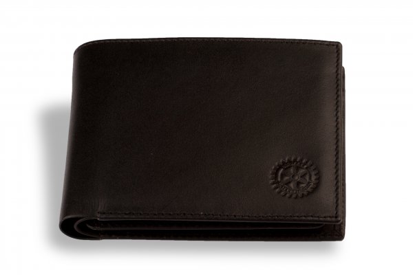 Hochwertiges Rotary Portemonnaie aus schwarzem Leder mit dezent geprägtem Rotary Logo.