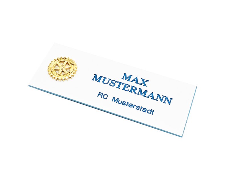 Our elegant name badges are very popular, as the name is legible in sufficient size without being too obtrusive. The attached 15 mm Rotary emblem out of golden metal gives the badge a classy look compared to other dull plastic badges. Our badge is engraved and not printed! A strong magnet keeps the badge in place on all suits and textiles without unnecessary holes.If desired, this product is also available with a needle or a clip.