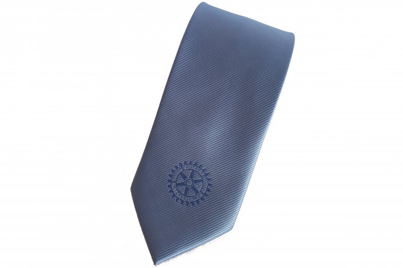 This Tie in classy pastel blue with subtle stripes is refined through a embroidered Rotary Logo in the same color, located in central position at the bottom of the tie.  With a buttoned Blazer the emblem is not visible, which makes wearing this tie on non-rotary occasions possible. However, the Logo can be well visible if desired.