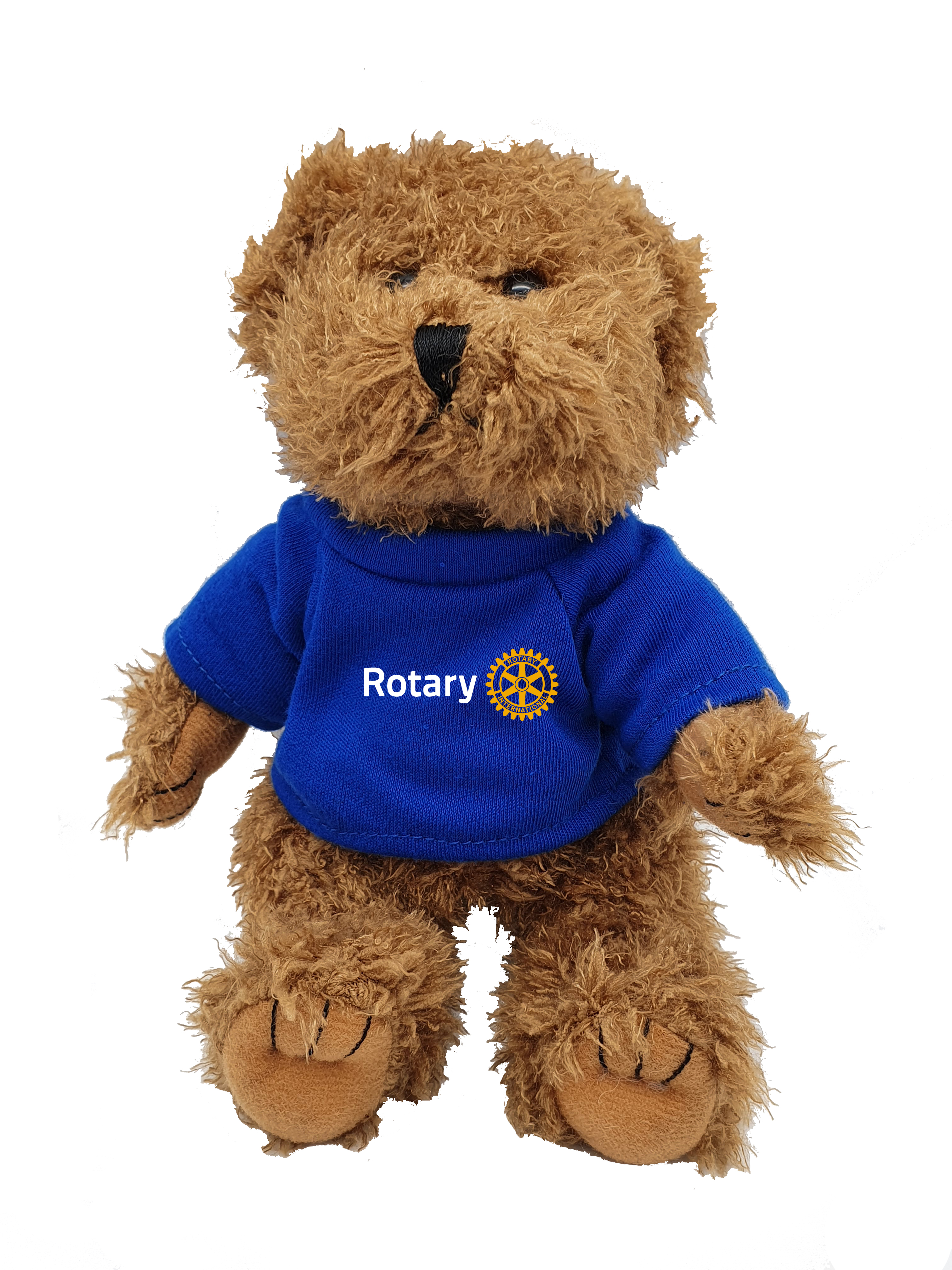 Fluffy teddy bear with a printed Rotary T-shirt. About 15cm tall.