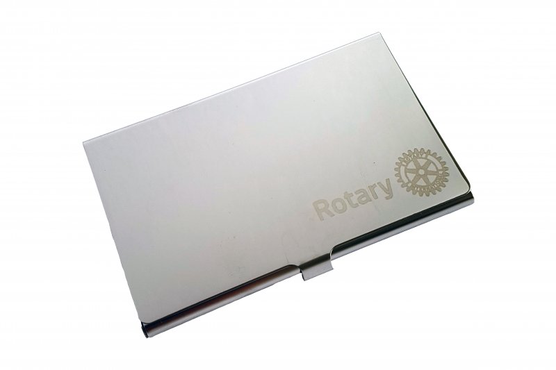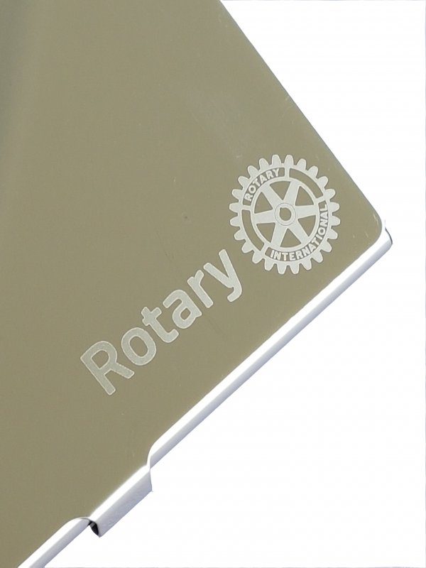 This chrome plated business card box prevents your business cards from getting damaged or folded while carrying them around in your pocket or boardcase. The Rotary Masterbrand Logo is laser engraved.