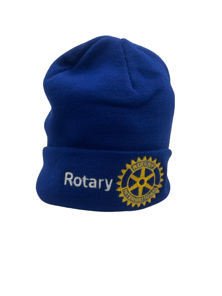 The Rotary writing and the mark of excellence are located prominently on the beanie.