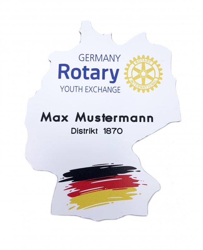 These cards can be distributed to exchange students upon their arrival. It is not only useful for the exchange student (German emergency numbers,) but also for others as they contain the information about the student.If students are involved in an accident, the first responders can immediately contact the responsible Rotarian. The cards can be produced for the entire district. The back is customized with the details of the exchange student and the responsible Rotarian of the club.For further information please contact us via info@club-merchandise.de.
