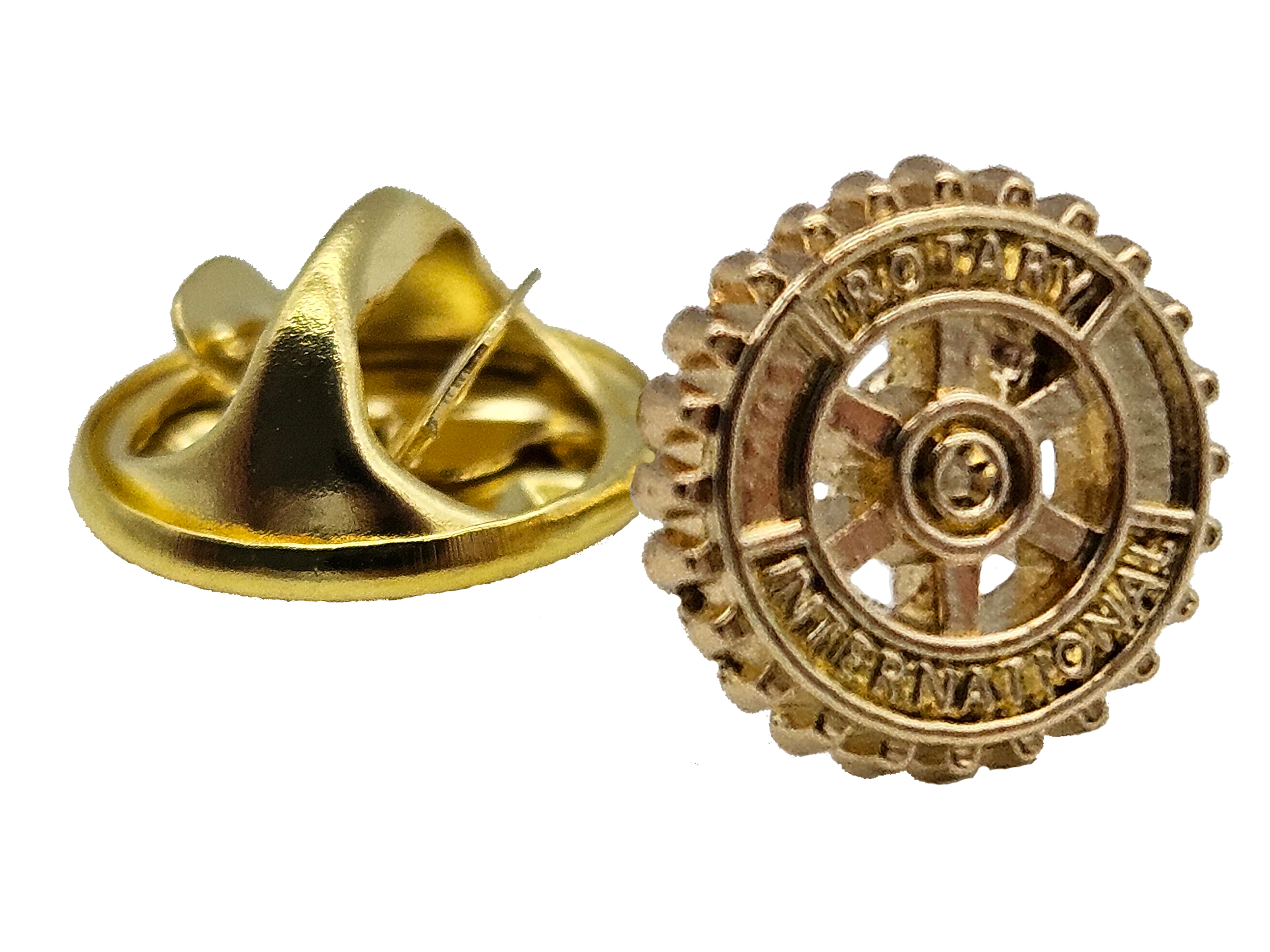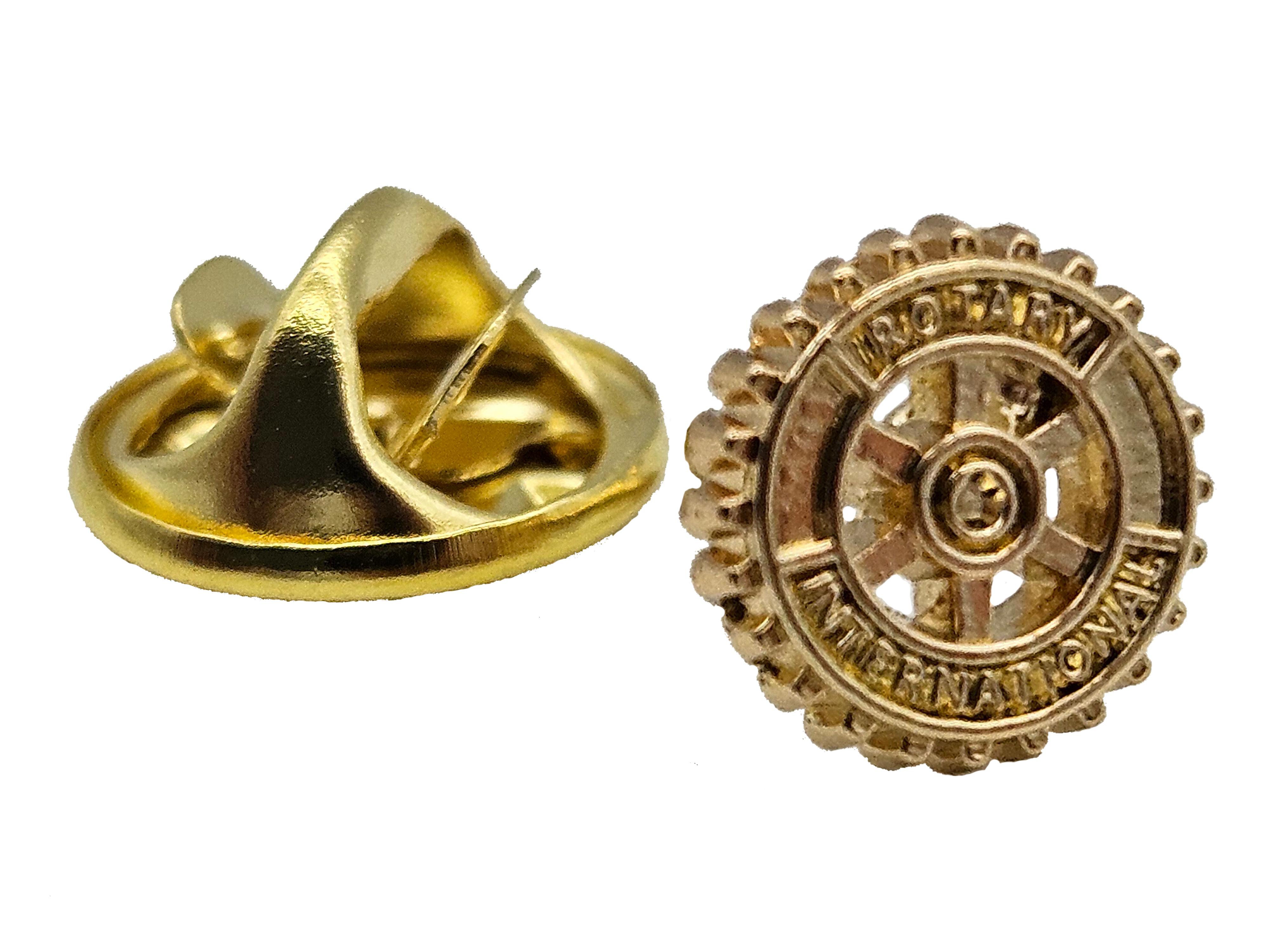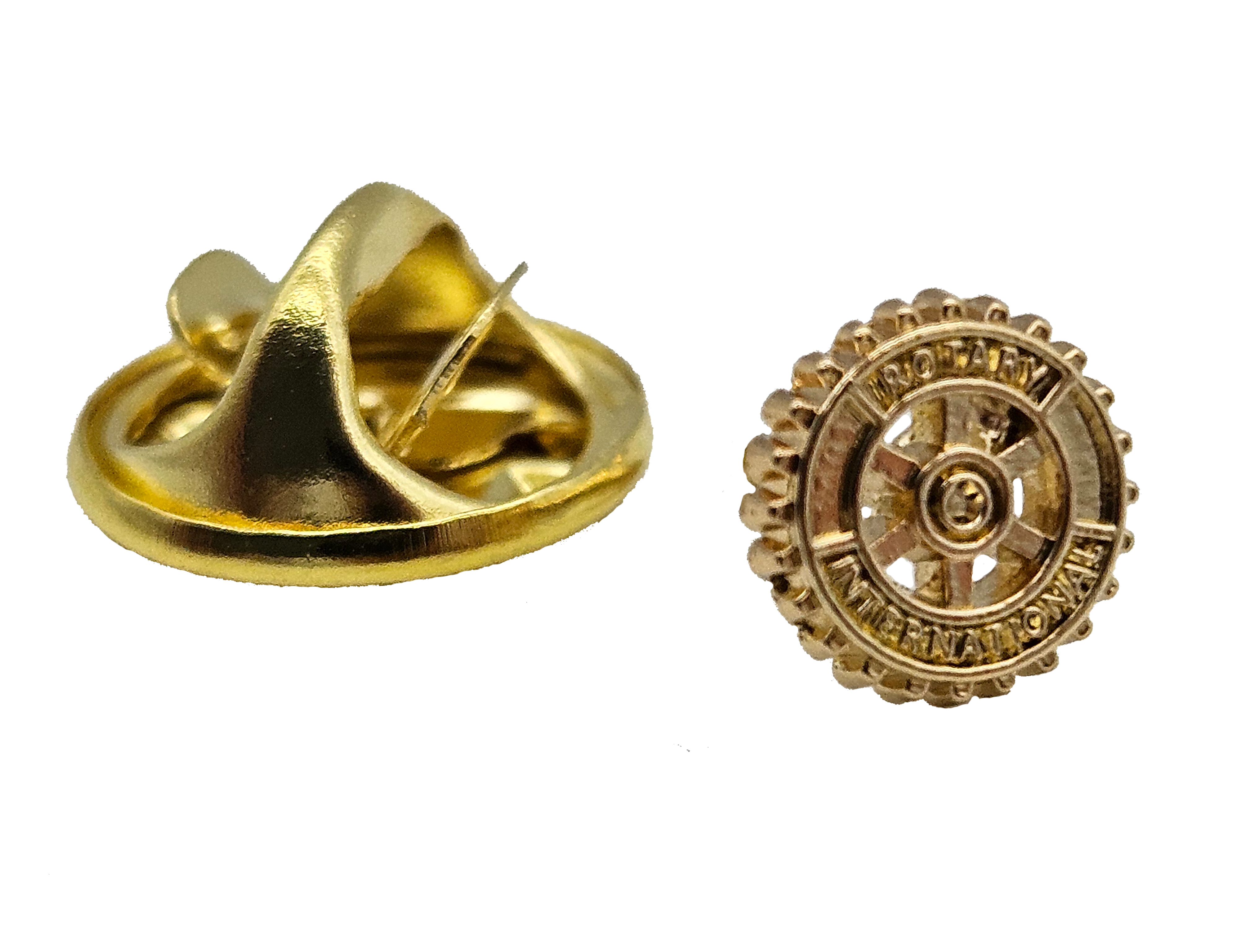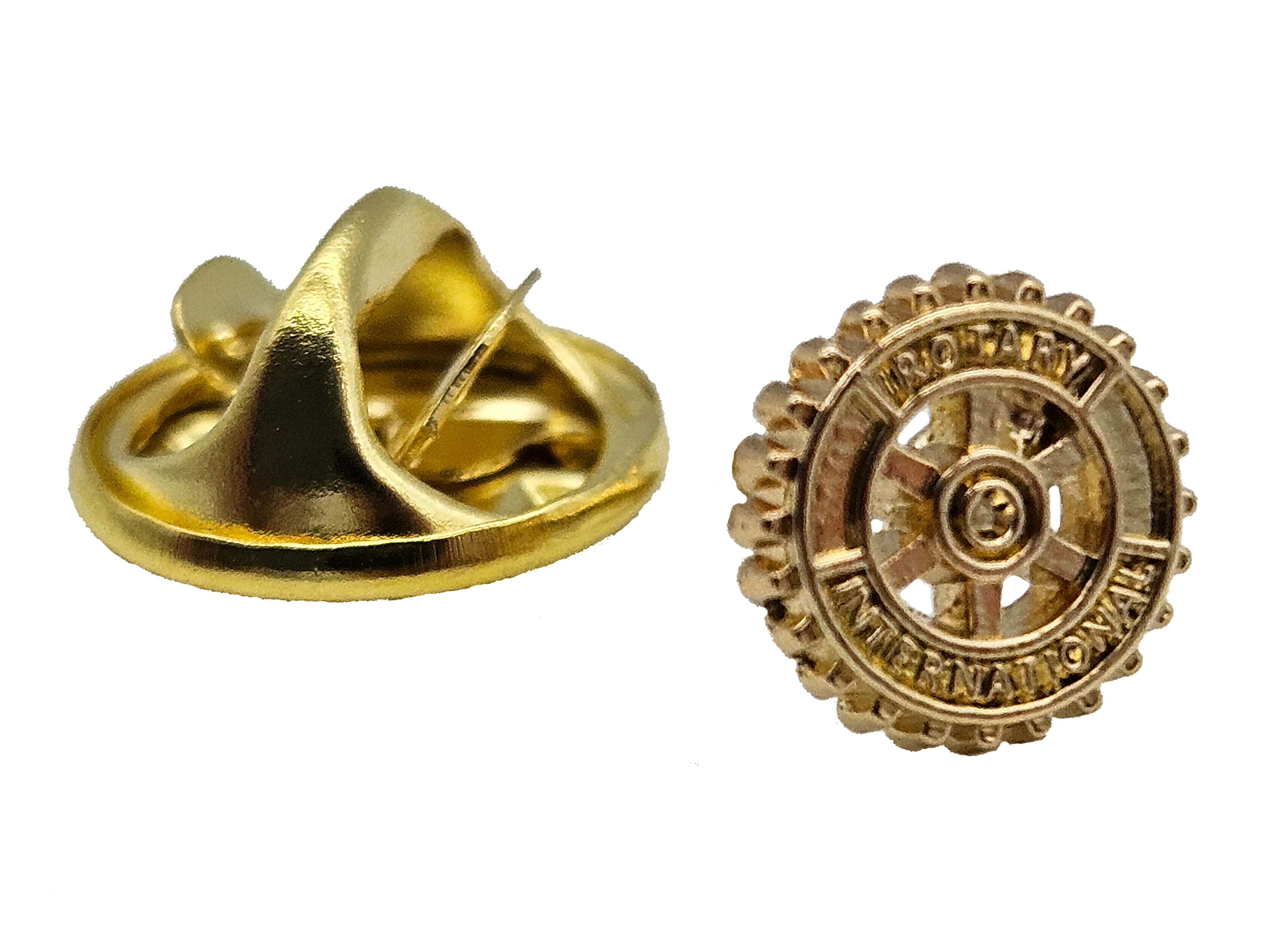 The Rotary member pin is made of the highest quality and can be securely attached to almost all textiles with its butterfly clasp. The delicately punched lettering is still legible even at the smallest size. The pin is available in diameters of 7mm, 9mm, 11mm and 15mm.